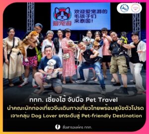 ททท.สำนักงานเซี่ยงไฮ้ ร่วมกับ บริษัท Pet Travel (爱宠游 Ai Chong You) จัดกิจกรรมนำคณะนักท่องเที่ยวจีนเดินทางท่องเที่ยวประเทศไทย พร้อมสุนัขตัวโปรด เจาะกลุ่ม Dog Lover จำนวน 19 ตัว เดินทางท่องเที่ยวในประเทศไทยพร้อมเจ้าของ จำนวน 41 คน โดยสารเที่ยวบินเช่าเหมาลำ (Charter Flight) สายการบิน Juneyao คณะดังกล่าวมีกำหนดเดินทางมาถึงยังท่าอากาศยานสุวรรณภูมิ ในคืนวันที่ 6 มิถุนายน 2567 มีกำหนดการท่องเที่ยวในเส้นทางกรุงเทพฯ-พัทยา ระหว่างวันที่ 6-13 มิถุนายน 2567