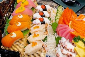 ไลน์อาหารจัดเป็นโซนเลือกทานได้ไม่อั้น ปรุงสดใหม่แบบจานต่อจาน พร้อมเมนูพิเศษ ราคาท่านละ มื้อกลางวัน 690 บาท และ มื้อเย็น 790 บาท เพิ่มซีฟู้ดออนไอซ์