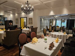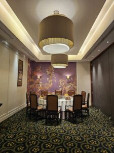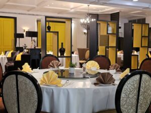 ภายในห้อง อาหารคุมโทนด้วยสีเหลือง-ทอง สร้างความหรูหราได้อีกระดับหนึ่ง และยังสามารถตอบโจทย์การสังสรรค์ในทุกรูปแบบ ไม่ว่าจะมาในแบบครอบครัว เพื่อนฝูง พูดคุยธุรกิจ หรือหากต้องการพบปะในแบบส่วนตัวสำหรับพิธีสำคัญต่างๆ ก็มีห้อง VIP ไว้บริการ ซึ่งห้อง VIP เหมาะสำหรับการจัดเลี้ยงสังสรรค์เป็นหมู่คณะ เพื่อความเป็นส่วนตัว ซึ่งมีทั้งหมด 5 ห้อง สามารถรองรับได้ตั้งแต่ 6 ที่นั่งไปถึง 20 ที่นั่ง