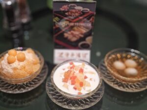 รวมถึง ซุปเยื่อไผ่ ซุปข้นเสฉวน ซุปกระเพาะปลา โดยจะให้บริการแบบ a la carte ในส่วนของของหวานเช่น สาคูแคนตาลูปเย็น เต้าฮวย และบัวลอยน้ำขิง ก็จะมีให้บริการแบบ a la carte เช่นกัน