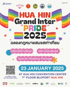 จังหวัดประจวบคีรีขันธ์ โดย อำเภอหัวหิน ร่วมกับ บลูพอร์ต หัวหิน พร้อมพันธมิตรภาครัฐและภาคเอกชน อาทิ การท่องเที่ยวแห่งประเทศไทยสำนักงานประจวบคีรีขันธ์ เทศบาลเมืองหัวหิน สมาคมธุรกิจการท่องเที่ยวหัวหิน – ชะอำ เชิญชวนประชาชนร่วมบันทึกประวัติศาสตร์ของการเดินทางของความเชื่อในความหลากหลายทางเพศ และนับถอยหลังสู่การบังคับใช้พระราชบัญญัติ (พ.ร.บ.) แก้ไขเพิ่มเติม ประมวลกฎหมายแพ่งและพาณิชย์ (ฉบับที่ 24) พ.ศ. 2567 หรือที่รู้จักในชื่อของกฎหมายสมรสเท่าเทียม ด้วยการประกาศความพร้อมจดทะเบียนสมรสสำหรับคู่รัก LGBTQIAN+ ภายใต้ชื่องาน “Hua Hin Grand Inter Pride 2025” โดยจะจัดขึ้นในวันที่ 23 มกราคม 2568ณ หัวหิน คอนเวนชั่นเซ็นเตอร์ ชั้น 1 บลูพอร์ต หัวหิน เป็นครั้งแรก โดยการเริ่มต้นการบังคับใช้กฎหมายดังกล่าว จะทำให้ประเทศไทยเป็นประเทศแรกในเอเชียตะวันออกเฉียงใต้ และเป็นประเทศที่สามในเอเชียที่รับรองการสมรสของคู่รักเพศเดียวกัน นับเป็นก้าวสำคัญในประวัติศาสตร์ในการส่งเสริมสิทธิความเท่าเทียมทางเพศให้กับกลุ่ม LGBTQIAN+ ทั่วประเทศ