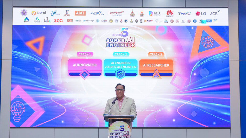 สำหรับโครงการ Super AI Engineer ในปีนี้เป็น Season ที่ 5 แล้ว ซึ่งตั้งแต่ Season 1-4 ที่ผ่านมา ก็ได้รับความสนใจเป็นอย่างมาก มีผู้สมัครเข้าร่วมโครงการรวมมากกว่า 33,000 คน และ Super AI Engineer Season 5 นี้ เป็นการเสริมสร้างและพัฒนาศักยภาพบุคลากรให้มีทักษะด้านปัญญาประดิษฐ์ ที่สามารถเข้าสู่อุตสาหกรรมได้จริง มีศักยภาพทัดเทียมระดับสากล ภายใต้กำลังคน 3 กลุ่ม ได้แก่ นวัตกร (AI Innovator) วิศวกร (AI Engineer) และนักวิจัยระดับสูง (AI Researcher) พร้อมต่อยอดเป็นผู้ประกอบการวิสาหกิจเริ่มต้น (AI Solopreneur/AI Entrepreneur) และเป็นผู้มีทักษะในการถ่ายทอดและแลกเปลี่ยนความรู้ได้ (AI Instructor) รวมไปถึงการพัฒนาระบบนิเวศการพัฒนากำลังคนด้านปัญญาประดิษฐ์ (AI Workforce Development Ecosystem) และกระตุ้นความสนใจและเกิดความร่วมมือเข้าสู่การพัฒนาศักยภาพปัญญาประดิษฐ์ให้กับประชาชนทุกระดับ และสุดท้ายเป็นการสร้างกรอบมาตรฐานคุณวุฒิวิชาชีพด้านปัญญาประดิษฐ์ เชื่อมโยงไปยังธนาคารหน่วยกิต (Credit Bank) ที่มีอยู่ให้รองรับการพัฒนากำลังคนด้านปัญญาประดิษฐ์ขั้นสูง