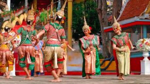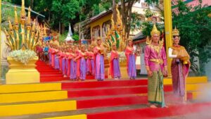 โอกาสนี้พุทธศาสนิกชน จะได้ชมการแสดงเบิกนภาอวยพร ต้อนรับขบวนสวรรค์ ที่นำโดยนางฟ้าเอกที่มีความงดงาม ตามด้วยขบวนเครื่องสูง และเหล่าจตุรเทพ พระอินทร์ พระพรหม พระอิศวร พระวิษณุ รวมถึงเหล่าเทพยดา นางฟ้า ที่คงความศักดิ์สิทธิ์ตามตำนานพุทธประวัติ