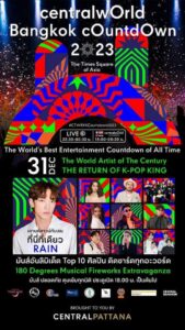 ทุ่มงบ 500 ล้านบาท ชู 7 ไฮไลต์ เคานต์ดาวน์ระดับโลกที่ดีที่สุดตลอดกาล จัดยิ่งใหญ่ เต็มรูปแบบ พร้อมเซอร์ไพรส์ศิลปินระดับโลก The World artist of the century ที่ทุกคนรอคอย “The Return of K-POP King “RAIN” ยิงใหญ่ที่สุดแห่งศตวรรษที่นี่ที่เดียว
