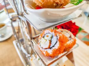 เป็นการนำเมนูเด็ดที่ขึ้นชื่อของครัวต่างๆ มารวมตัวกันทั้งนานาชาติ ไทย ญี่ปุ่น เบเกอรี่ เช่น ถุงทอง ไก่สะเต๊ะ ทอดมันกุ้ง แคลิฟอร์เนียมากิ แซนวิชทูน่า มาการอง ครัวซองค์แฮม เค้ก สโคน และ ทาร์ตผลไม้ เป็นต้น พร้อมเสิร์ฟระหว่างเวลา 10.00 – 16.00 น. ทุกวัน เพียงชุดละ 599 บาท++ สำหรับ 2 ท่าน