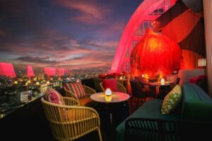 รูฟท็อปแห่งใหม่สุดหรูใจกลางกรุง หนึ่งจุดเช็คอินแฮงค์เอาท์ที่มีวิวมหานครโอบล้อมแบบ 360 องศา ที่มีแลนด์มาร์คความอร่อย คุณไม่ควรพลาดกับ “Chocolate Cave” ถ้ำช็อกโกแลตขนาดย่อมที่แรกและที่เดียวในเมืองไทย ที่ออกแบบถ้ำเป็นรูปทรงผลโกโก้ ออกแบบขึ้นตามแนวคิด Sky-High Cognac and Chocolate
