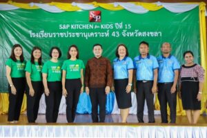 พร้อมกันนี้ได้ทำพิธีส่งมอบโรงครัว โดยผู้บริหารและพนักงานร่วมปรุงอาหารกลางวัน พร้อมมอบขนม S&P ให้น้องๆ ได้อิ่มอร่อยและสุขภาพดี ณ โรงเรียนราชประชานุเคราะห์ 43 จ.สงขลา และโรงเรียนตำรวจตระเวนชายแดนบ้านเขาจ้าว จ.ประจวบคีรีขันธ์