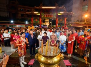 พร้อมด้วย นักแสดงจาก Series Boys of Gods อาลิซาเบธ แซ็ดเลอร์ ลีนานุไชย ดร. คทา ชินบัญชร พรีเซนเตอร์ โครงการเที่ยวไทยรับพลังบวก ผู้เชี่ยวชาญค้านประวัติศาสตร์ ศาสนาและวัฒนธรรมจีน เป็นผู้ นำไหว้ ฟ้าดินขอพร พระจันทร์ และ องค์เทพเย่วโหล่ว (ผู้เฒ่าจันทรา) พร้อมทั้งร่วมกันตัด ขนมไหว้พระจันทร์ ใหญ่ที่สุดในประเทศไทย