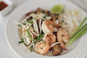 และห้ามพลาดอีกอย่างหนึ่งที่เมนูที่ต้องสั่ง ผัดไทยกุ้งสด และ ขนมผักกาดกุ้ง ที่เชฟทำตัวแป้งเอง จากหัวไชเท้า จึงเรียกได้ว่าทุกเมนูในร้านเป็นอาหารสไตล์โฮมเมด โดยเฉพาะน้ำจิ้มทุกอย่างก็ยังเป็นโฮมเมดเช่นกัน