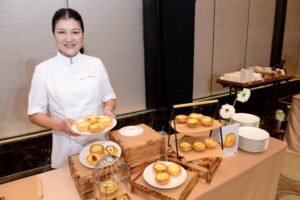 พร้อมชิม Afternoon Tea ที่รังสรรค์โดย 2 เชฟชื่อดัง ได้แก่ เชฟไก่-ธนัญญา กุลตั้งพานิช Iron Chef ประเทศไทย มาพร้อมเมนู Portuguese egg tart ปิ้งด้วยโหมดขนมปังบาแก็ตในอุณหภูมิความร้อนที่เหมาะสม ทำให้ egg tart ได้ความกรอบนุ่มอร่อยกำลังดี ส่วน เชฟบิ๊ก– อรรถสิทธิ์ พัฒนเสถียรกุล Top Chef นำเสนอเมนู Brie Caramalize Onion Mushroom Bruschetta ปิ้งในโหมดขนมปังชีสโทสต์ ทำให้ขนมปังมีสีสันเหลืองทองน่ารับประทาน โดยเชฟได้ใช้ BALMUDA The Toaster ในการทำอาหารทั้ง 2 เมนู รับประทานคู่กับชา หรือกาแฟร้อนๆ รสชาติกลมกล่อมจาก BALMUDA The Pot เนรมิตบรรยากาศให้เป็น Afternoon Tea ที่แสนเฟอร์เฟคที่สุด