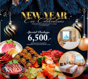 โรงแรม ดิ เอมเมอรัลด์ ขอเชิญท่านมาร่วมส่งท้ายปีเก่า ต้อนรับปีใหม่ ค่ำคืนวันที่ 31 ธันวาคม 2566 ที่ ดิเอมเมอรัลด์ ค็อฟฟี่ช็อพ อิ่มอร่อยกับบุฟเฟต์นานาชาติ รวมซูชิพรีเมียมและซีฟู้ด ที่ได้คัดสรรเมนู