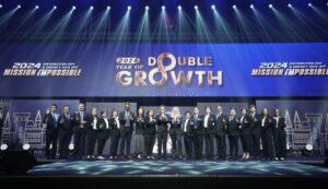 บมจ.กรุงไทย-แอกซ่า ประกันชีวิต เปิดปีอย่างยิ่งใหญ่ พร้อมปลุกพลังฝ่ายขาย จัดงานประชุมผู้จัดการฝ่ายขาย “2024 Distribution Day & Agency Kick Off – Year of Double Growth” เพื่อสนับสนุนฝ่ายขายทุกช่องทางจัดจำหน่าย นำทัพโดย คุณแซลลี่ โอฮาร่า ประธานเจ้าหน้าที่บริหาร (คนที่ 10 จากขวา) และคุณชัยณรงค์ เอื้อสิทธิชัย ประธานเจ้าหน้าที่บริหาร ฝ่ายจัดจำหน่าย (คนที่ 10 จากซ้าย) และคณะผู้บริหารระดับสูงร่วมเปิดงาน
